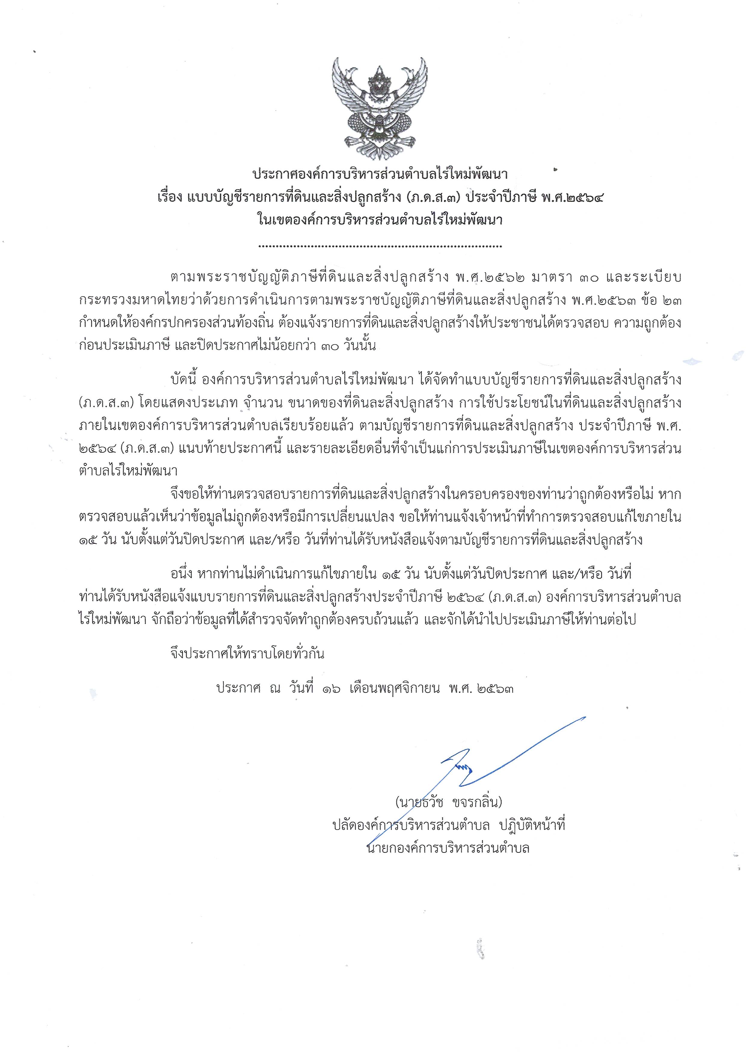 ประกาศองค์การบริหารส่วนตำบลไร่ใหม่พัฒนา เรื่อง ประกาศรายชื่อผู้ผ่านการสรรหาและเลือกสรรเป็นพนักงานจ้างตามภารกิจ ประจำปีงบประมาณ พ.ศ. 2564